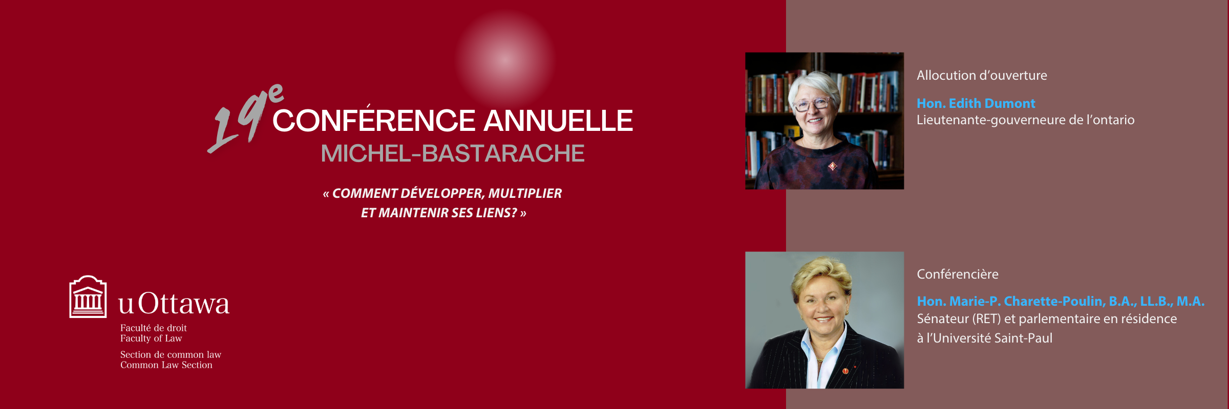 Chaque année, la conférence Michel-Bastarache regroupe des juristes diplômés et des amis du Programme de common law en français de l’Université d’Ottawa pour un petit-déjeuner causerie. C’est l’occasion pour les francophones et les francophiles de socialiser et d’échanger avec une personne invitée sur une question d’intérêt général.